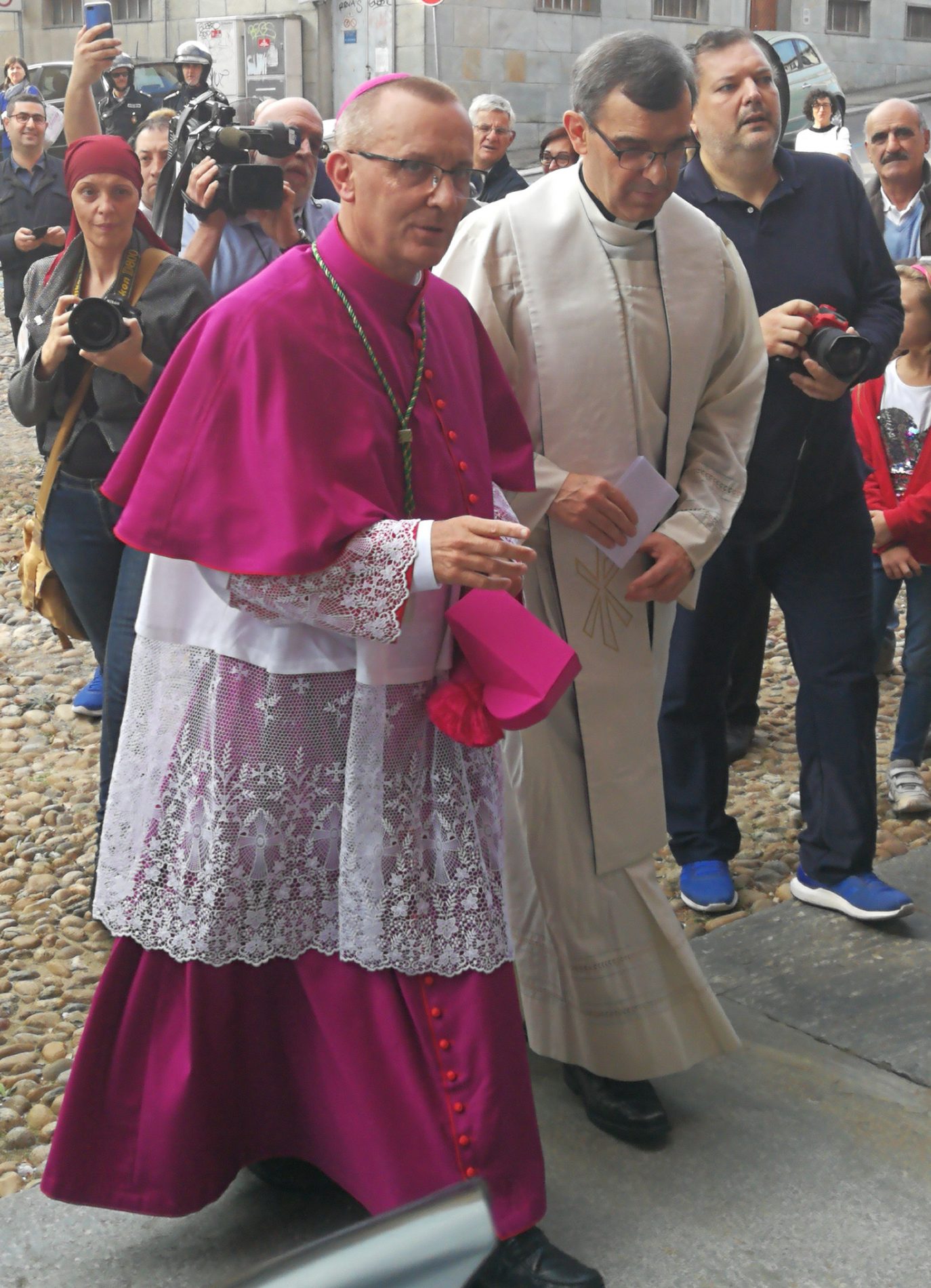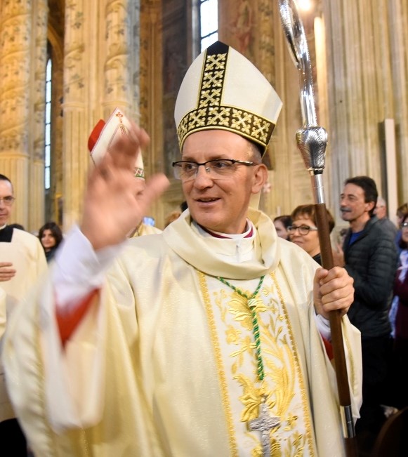 “Io qui mi sento già a casa – ha detto il nuovo vescovo con palpabile emozione – e voglio ringraziare il Signore che mi ha scelto, è un mistero del perché abbia scelto me. Sono spaventato ma so che il Signore mi accompagnerà e voi mi sosterrete. Grazie a papa Francesco per la fiducia che mi ha dato nominandomi vescovo della terra da cui proviene. Siate benevoli e misericordiosi.”