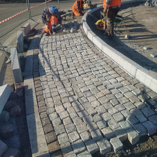 I lavori di pavimentazione esterna con pietra di Luserna di Bagnolo Piemonte, sono praticamente completati e nei prossimi giorni sarà posizionato il terreno che verrà inerbito, piantumato e abbellito con verde, arbusti, fiori o piccole porzioni di siepe basse.