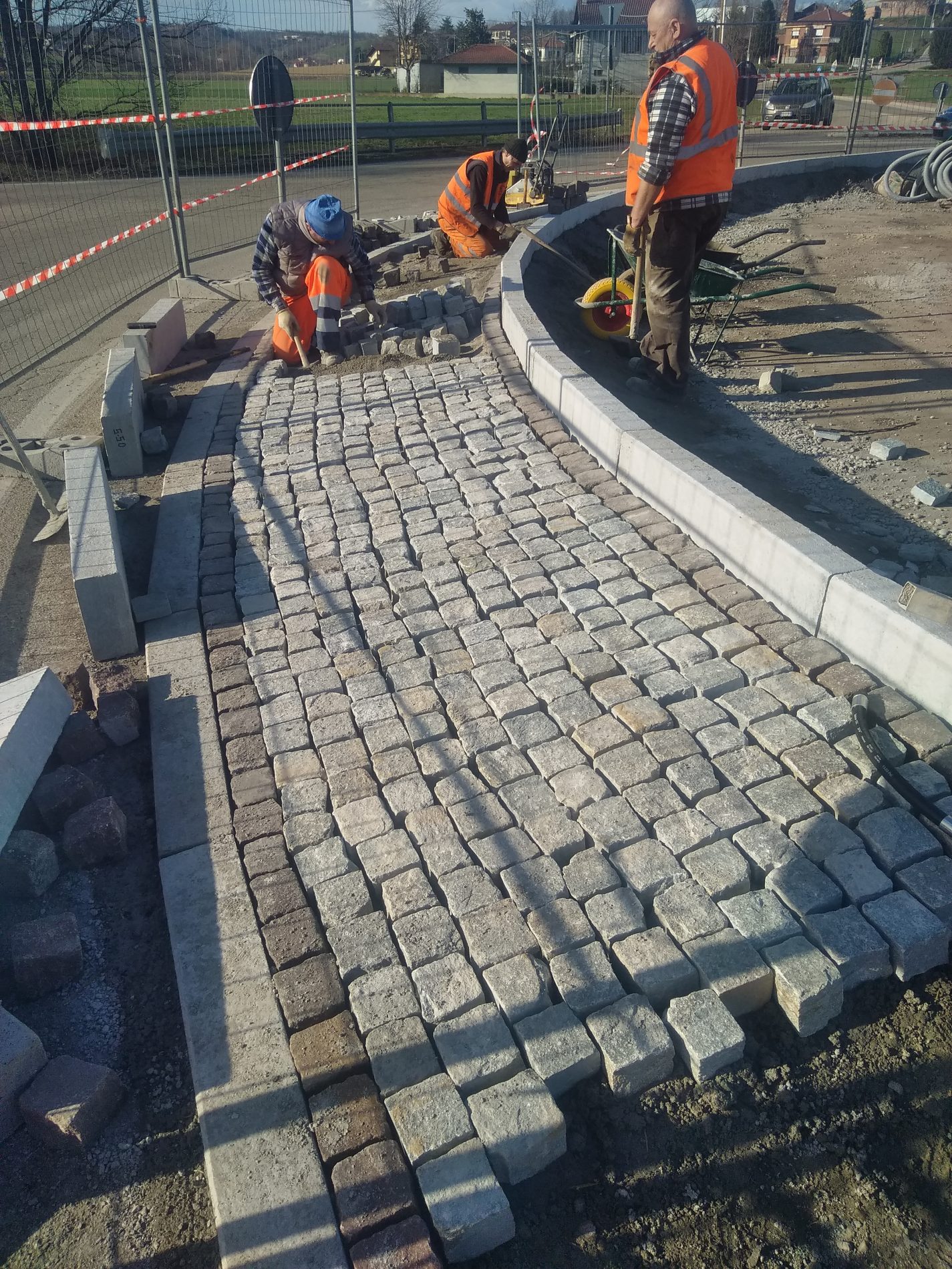 La realizzazione, curata dall’architetto Giuseppe Ramello ed eseguita dalle ditte Eugenio Franco e Giuseppe Rabino, prevede il posizionamento di terreno (donato dalla ditta Fratelli Lano costruzioni) che, dal bordo interno dell’isola, culminerà al centro della rotatoria per un’altezza di circa un metro.