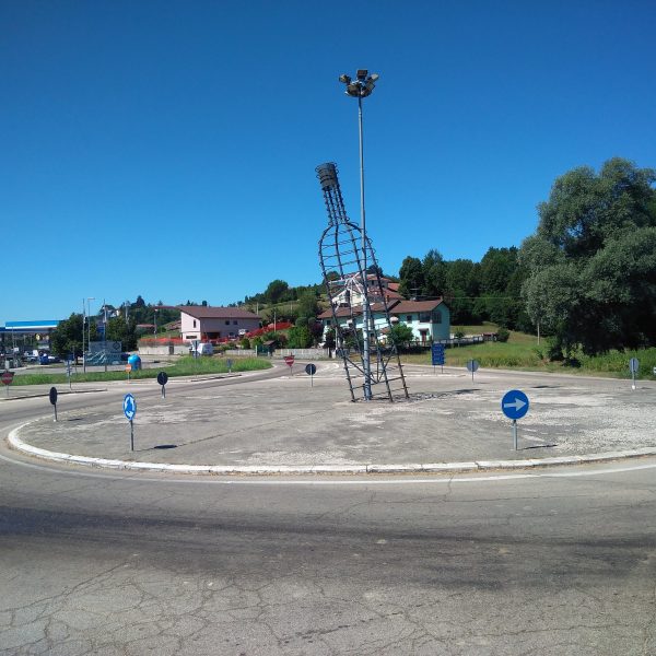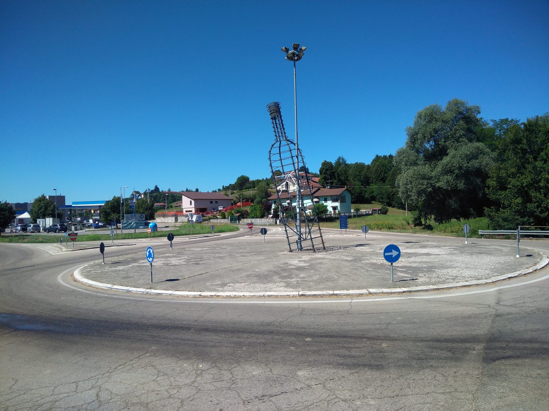La bottiglia, proprietà di Coldiretti, che campeggiava sulla “vecchia” rotonda, ormai quasi pericolante, è stata donata ad una cantina del territorio.