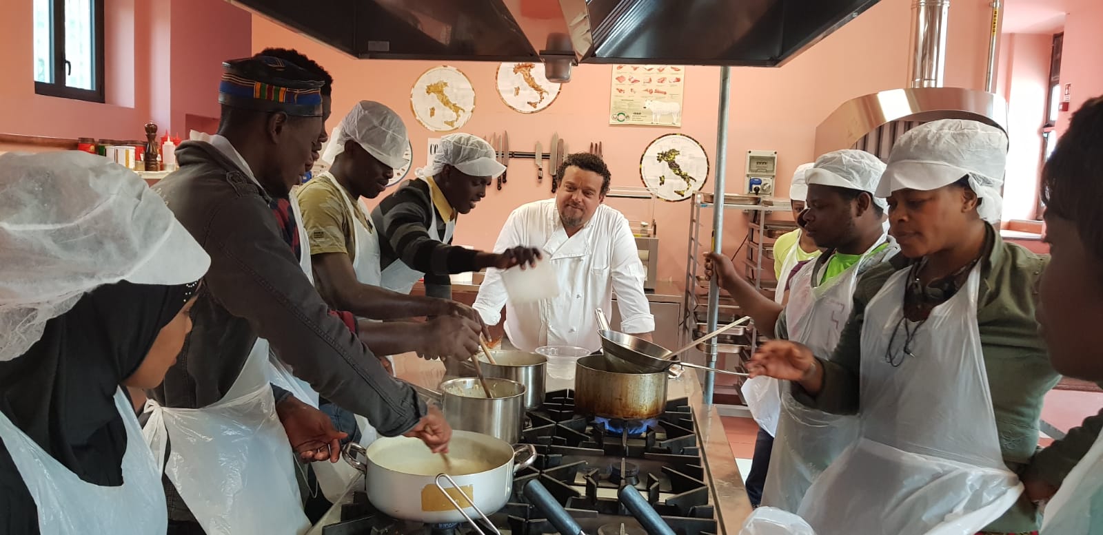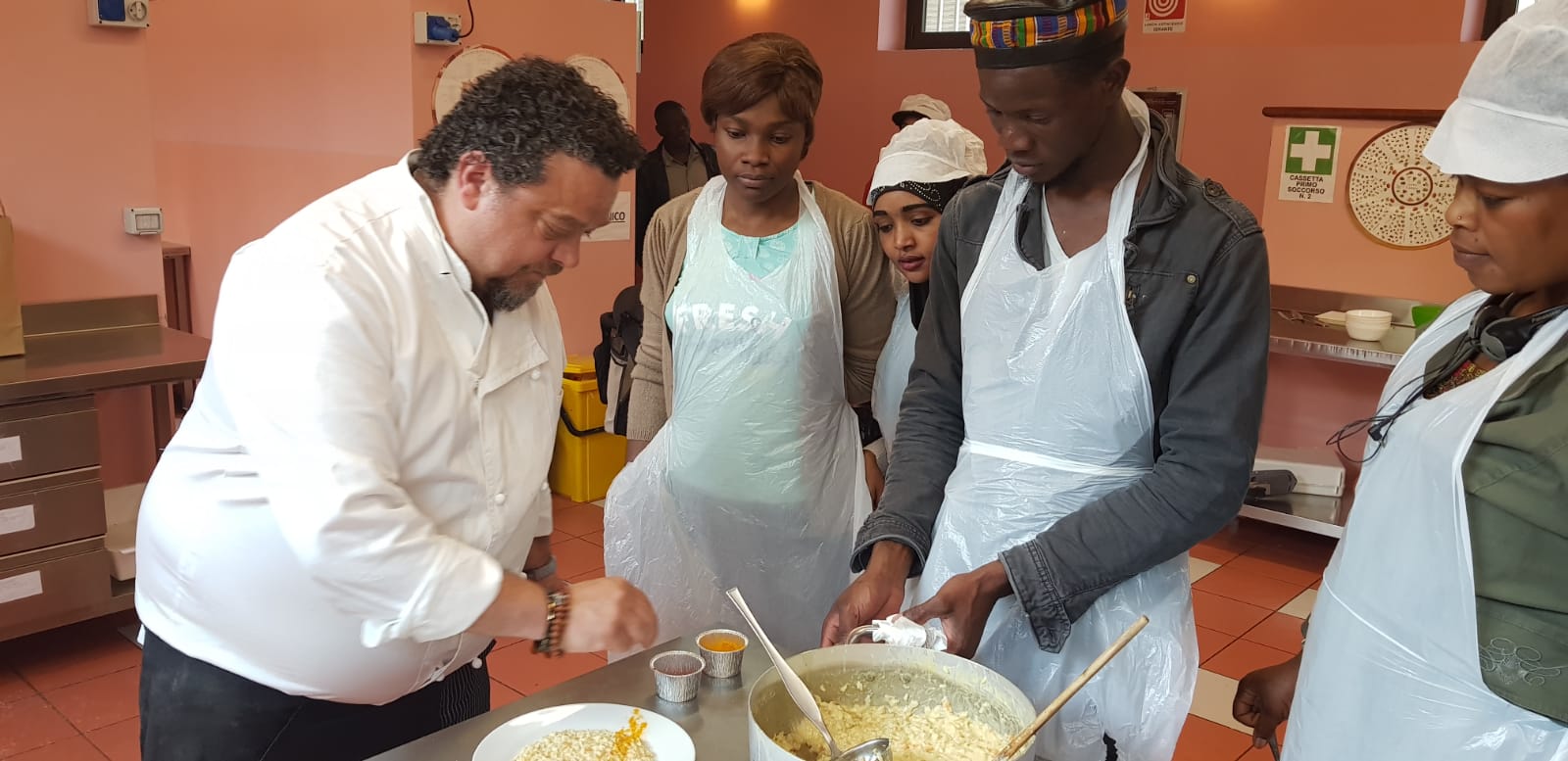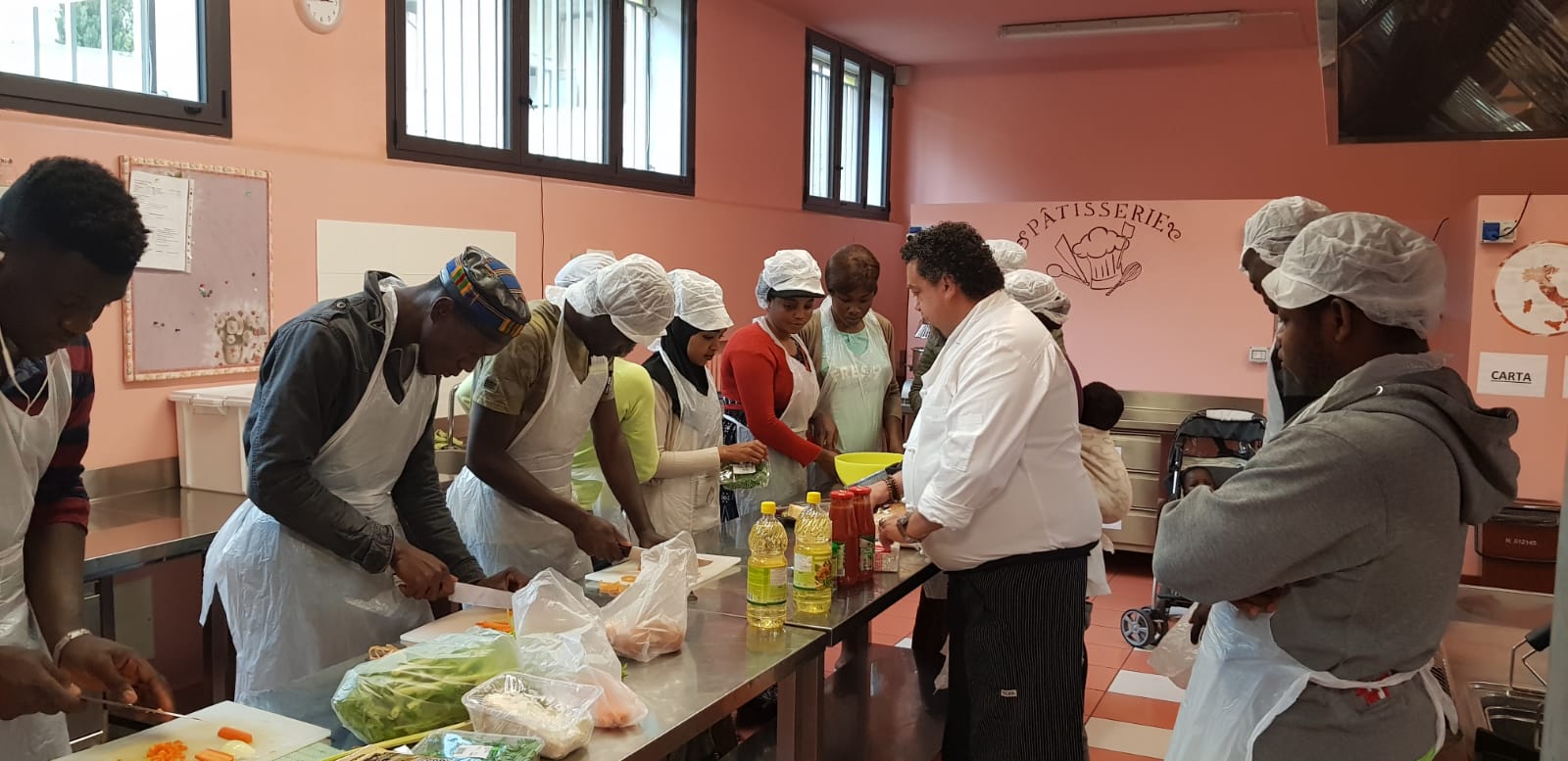 Inizio caldissimo del secondo corso di cucina tenuto da Marco Tortoriello che, dopo il successo e l’entusiasmo riscosso dalla prima edizione, ha allargato gli orizzonti coinvolgendo anche 5 ragazzi.