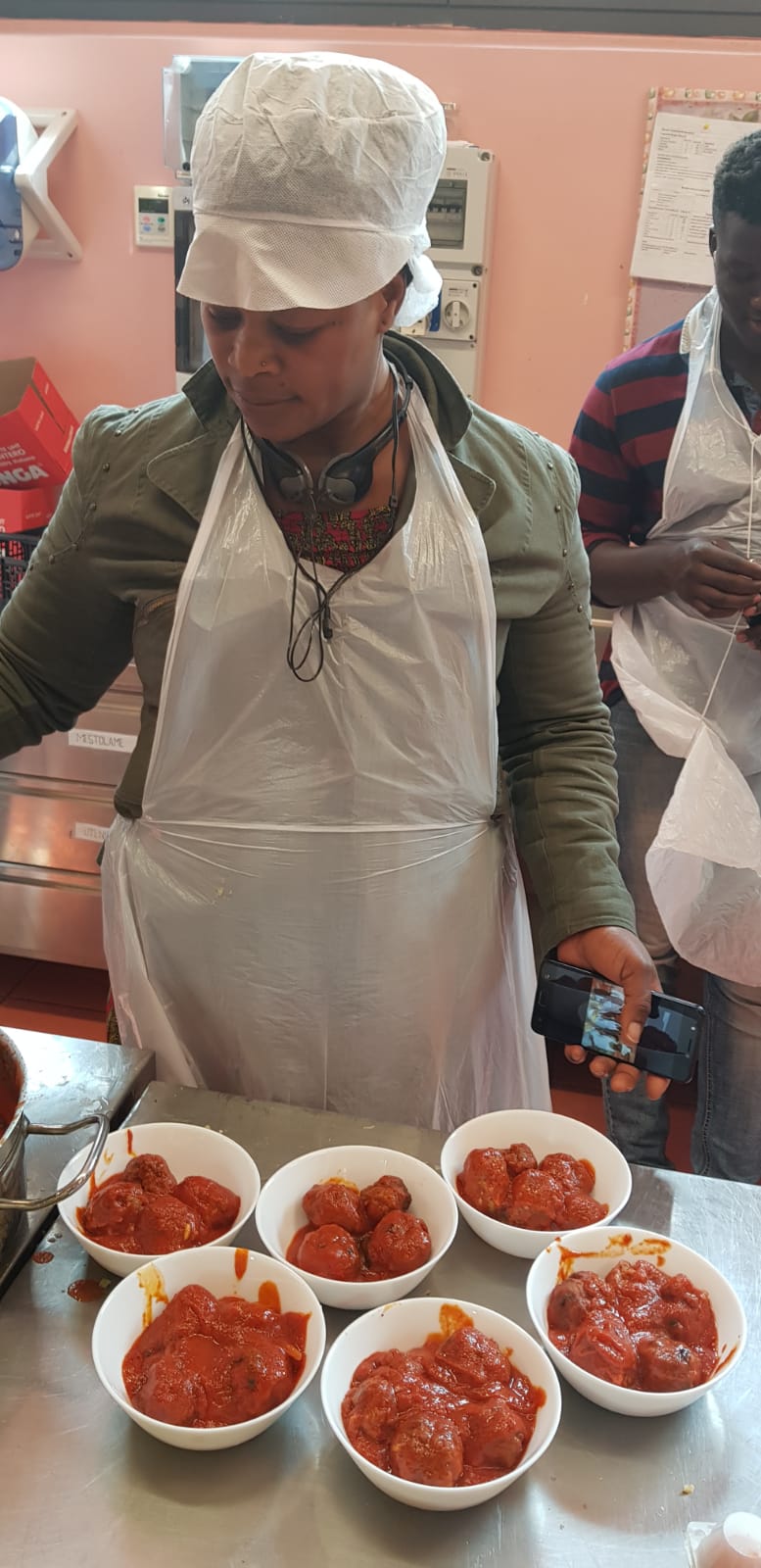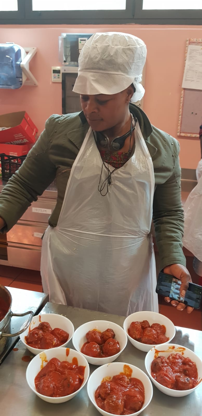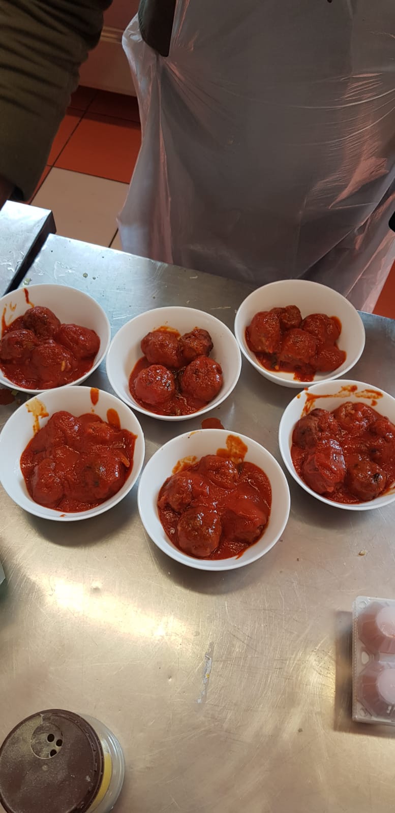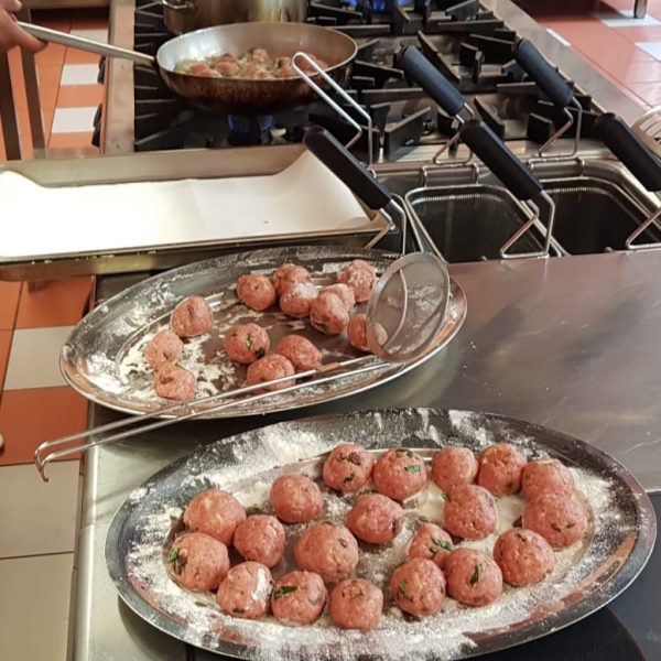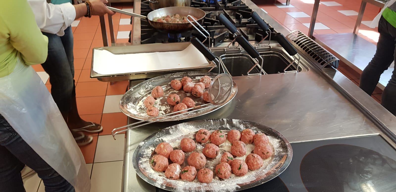 Due i piatti molto ricchi e golosi per questa prima lezione: Risotto con gorgonzola, noci, speck e curcuma, polpette con uvetta, pinoli e pomodorini.