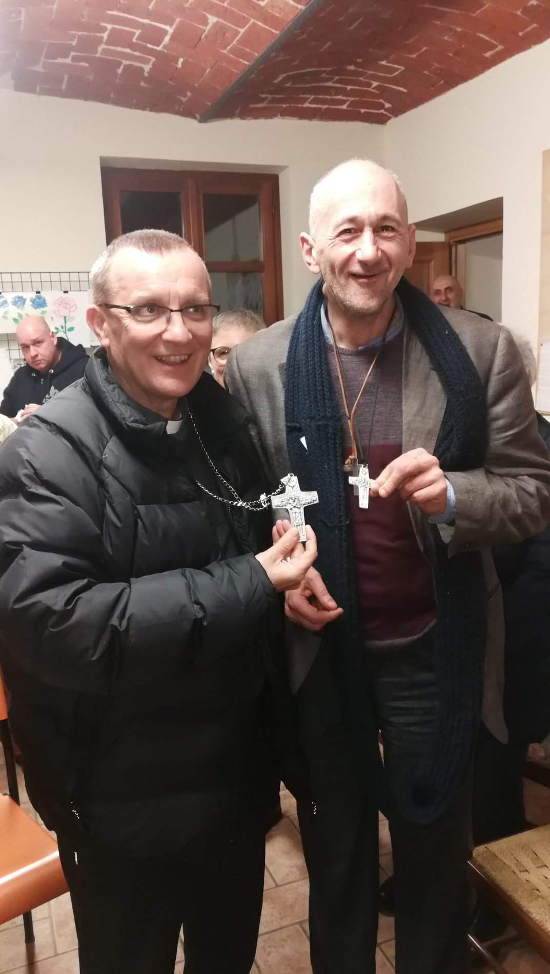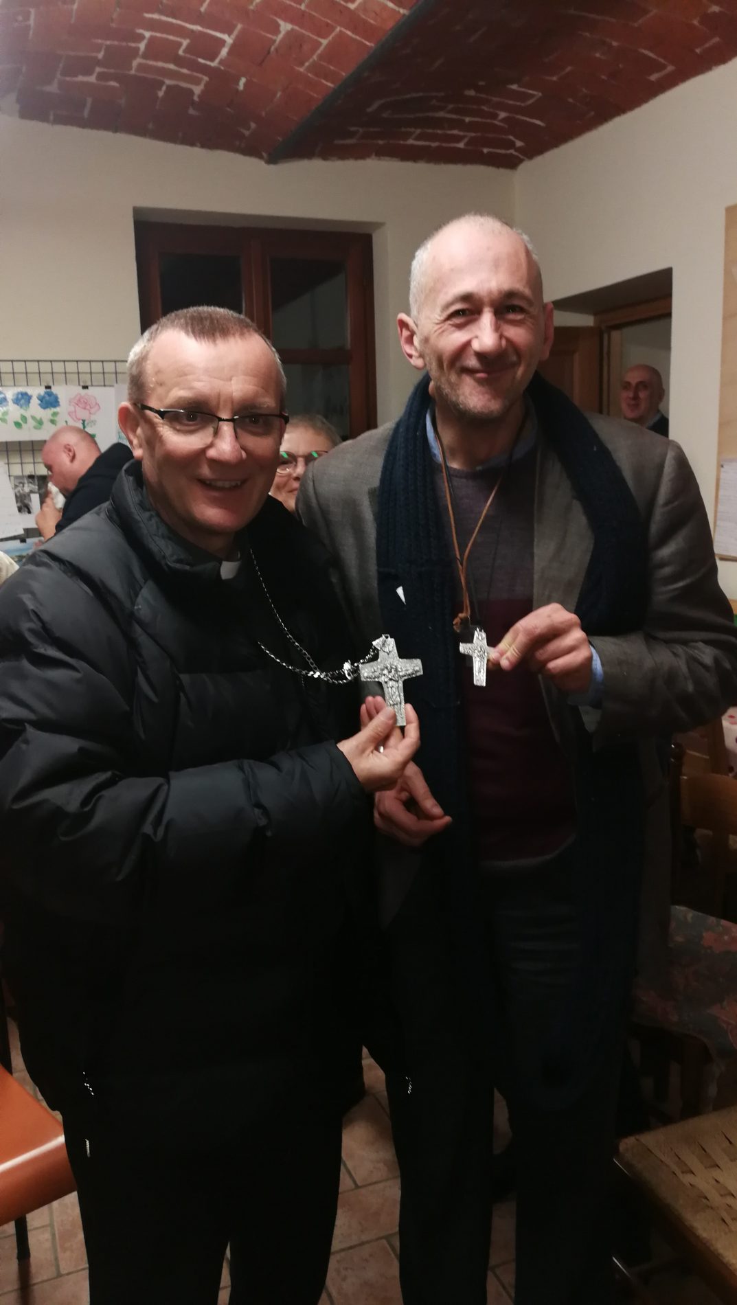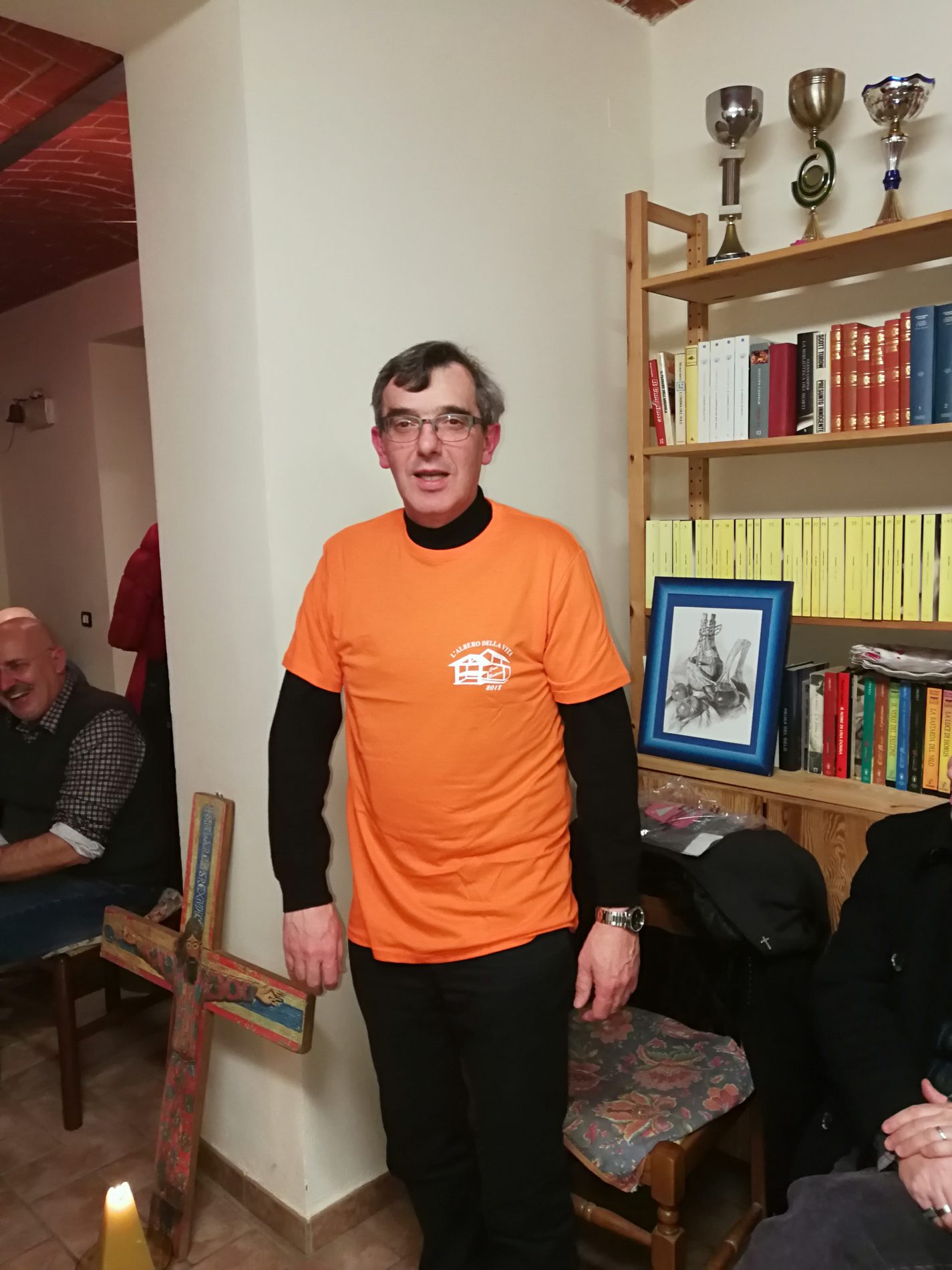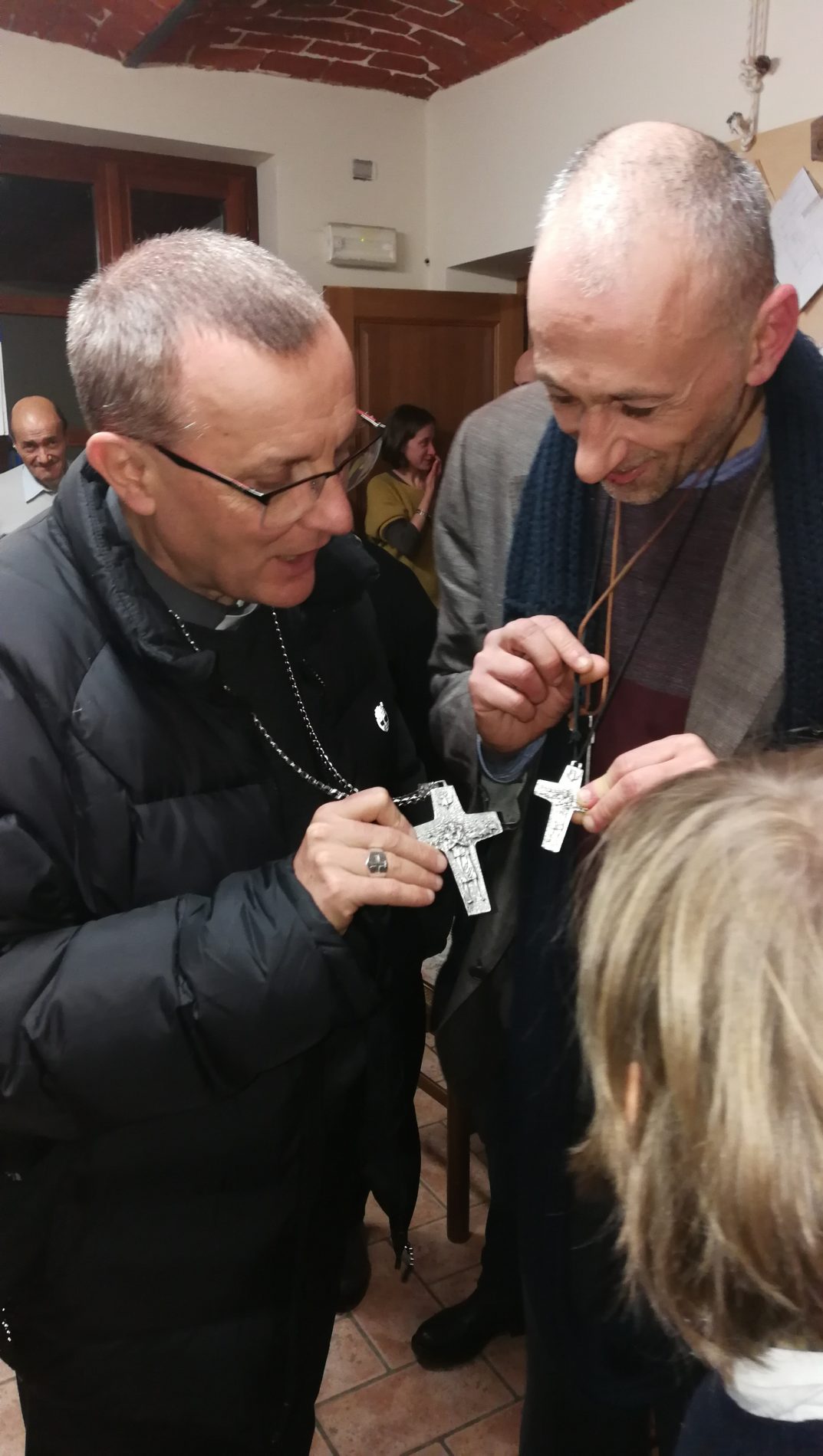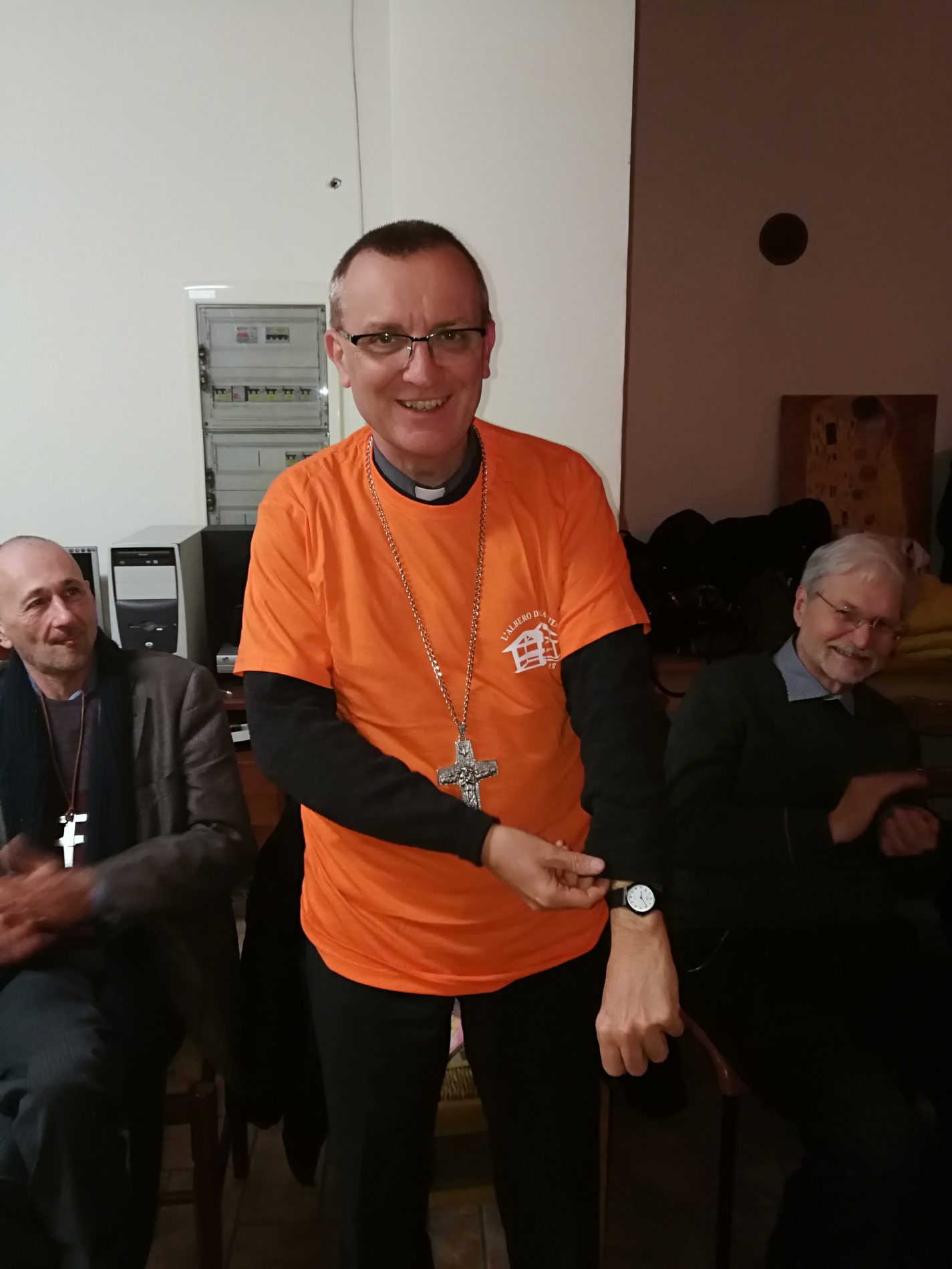 Il bel momento si è concluso con la donazione al vescovo e al vicario della maglietta dei volontari della festa che si tiene il secondo week end di luglio, proprio a Casa Bosticco con il contributo dell’associazione.